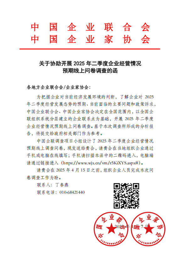關于協(xié)助開展 2025 年二季度企業(yè)經(jīng)營情況預期線上問卷調(diào)查的函