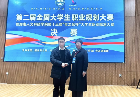 為貫徹落實(shí)黨中央、國務(wù)院關(guān)于高校畢業(yè)生就業(yè)工作的決策部署,加強(qiáng)高校就業(yè)指導(dǎo),增強(qiáng)大學(xué)生生涯規(guī)劃意識,促進(jìn)高校畢業(yè)生高質(zhì)量充分就業(yè)。12月10日,第二屆全國大學(xué)生職業(yè)規(guī)劃大賽暨湖南人文科技學(xué)院第十三屆“青之伙杯”職要有你——大學(xué)生職業(yè)規(guī)劃大賽在湖南人文科技學(xué)院匠成樓報告廳舉行。校黨委委員、副校長譚峰亮、婁底市人力資源和社會保障局就業(yè)服務(wù)中心創(chuàng)業(yè)服務(wù)部部長康杜娟、婁底市企業(yè)聯(lián)合會副秘書長兼校企合作宣傳部部長劉娟、創(chuàng)新創(chuàng)業(yè)指導(dǎo)中心黨支部書記曾真飚、招生就業(yè)處處長劉紅燃出席并頒獎,參加活動的還有利通磁電、市節(jié)能環(huán)保產(chǎn)業(yè)促進(jìn)中心、湘輝智匯人力資源和洪申科技等企業(yè)負(fù)責(zé)人。
