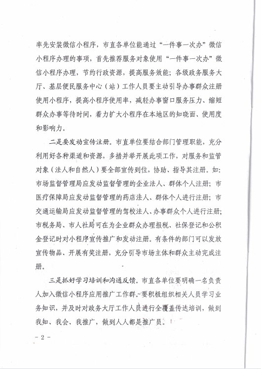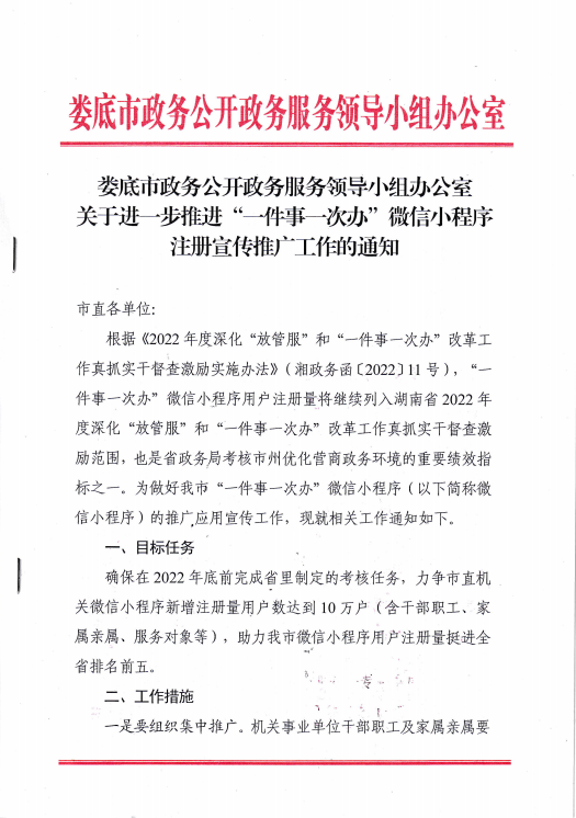 關(guān)于進一步推進“一件事一次辦”微信小程序注冊宣傳推廣工作的通知